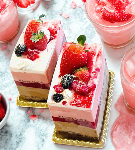 ベリーのムースには、ラズベリーのお酒を使用しています。