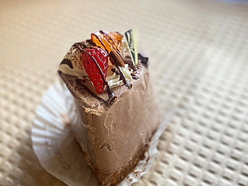 スポンジとクリーム、両方から、ちょっとずつ違うチョコの香りがいっぱーいに広がって、