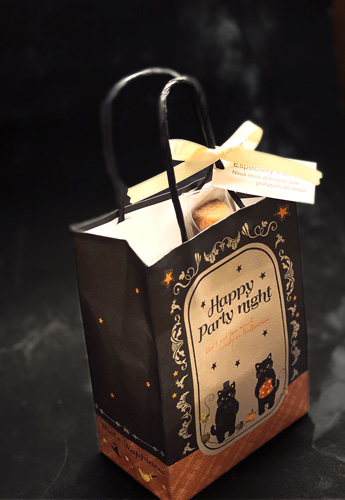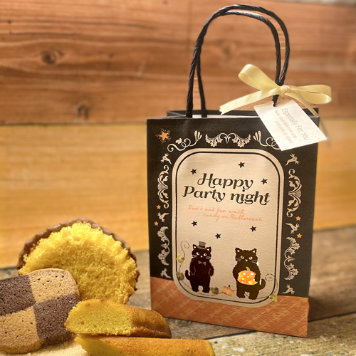 可愛いハロウィンのねこさんずが描かれたペーパーバッグに、