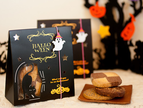 楽しいハロウィンナイトを眺める黒猫ちゃんが、とってもキュートなデザインです。