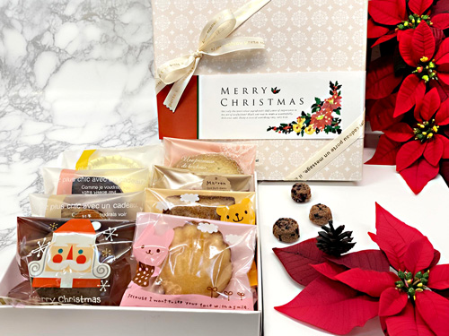 クリスマス柄の可愛い袋に入ったお菓子と、