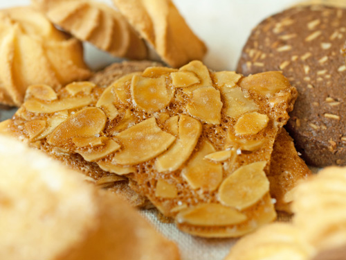 ☆うすーくパリッと焼き上げた、アーモンドスライスクッキー。ぎっしり敷き詰めたアーモンドがとても香ばしく、つい後引くおいしさです♪